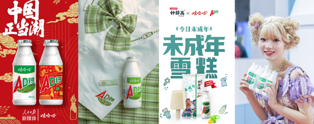 2018年初,宗馥莉出任娃哈哈集团品牌公关部部长,带来一系列诸如营养快线彩妆、哈哈棕、AD钙奶雪糕等品牌跨界创新尝试,并给AD钙奶这一经典IP找到了“未成年”、“还童奶”的新品牌意象,还通过和B站、英雄联盟职业联赛LPL等平台的深度合作,用不同产品触及消费者所在圈层。